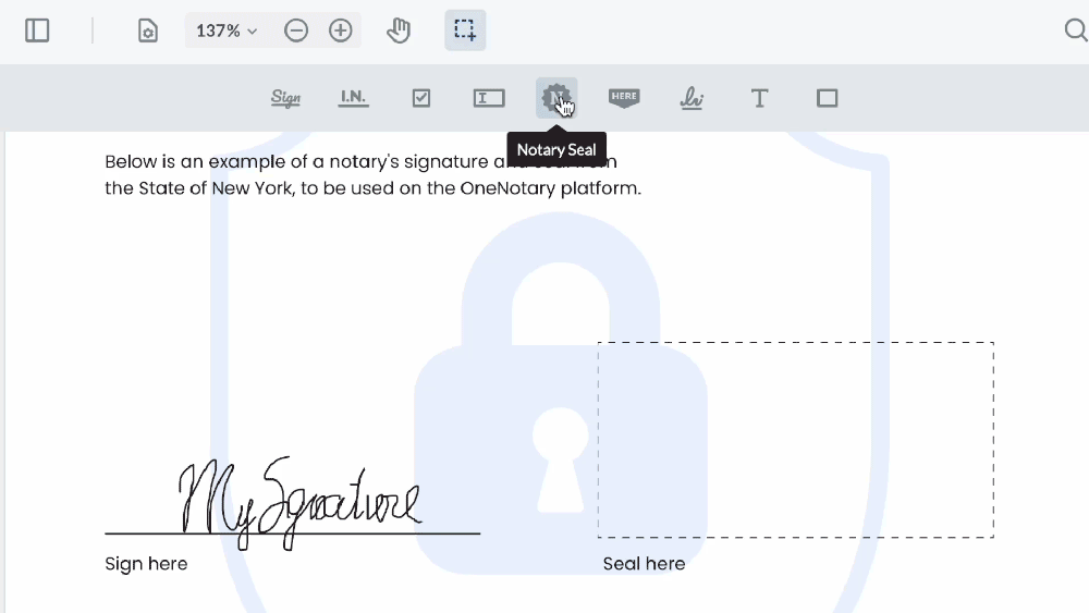 - Click the Notary Stamp icon on the toolbar located above the document.